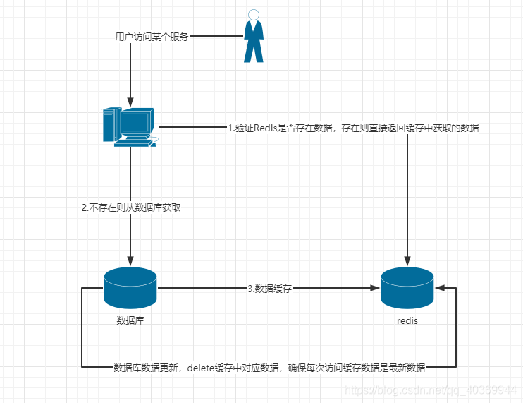 如用户第一次获取数据时是从数据库获取,因数据是从硬盘上读取,相对缓慢一些。将此次请求数据存于缓存,再次访问数据时是从缓存中获取,是直接操作内存,速度相对会快很多。如果数据库中数据发生变化,则把相应Key缓存数据删除,下次获取数据又会和第一次获取数据一样,且确保数据是最新数据。