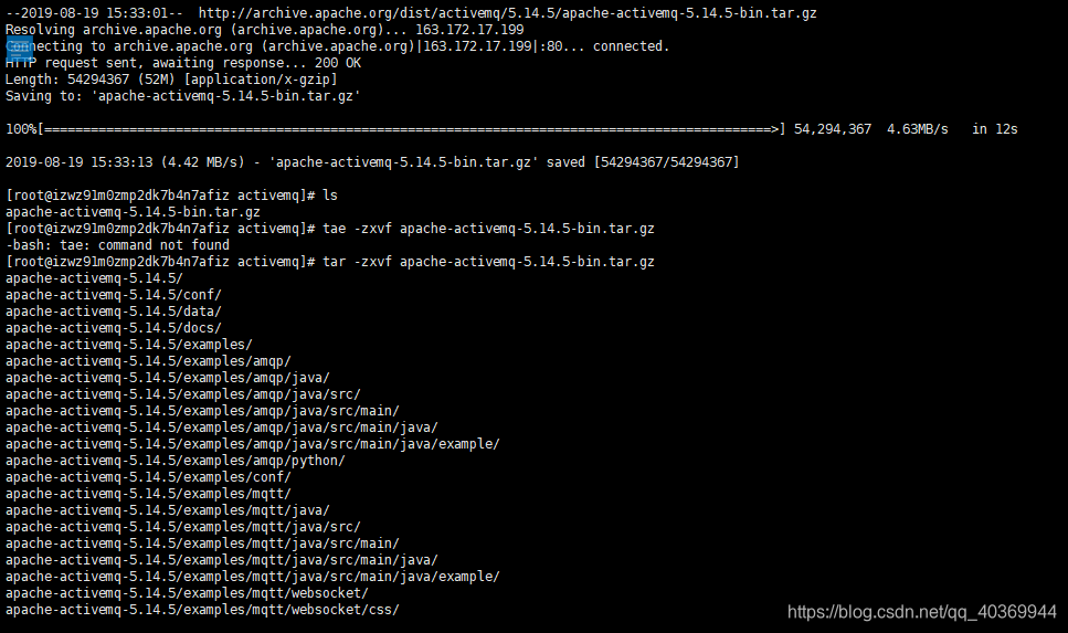 [root@izwz91m0zmp2dk7b4n7afiz activemq]# wget http://archive.apache.org/dist/activemq/5.14.5/apache-activemq-5.14.5-bin.tar.gz