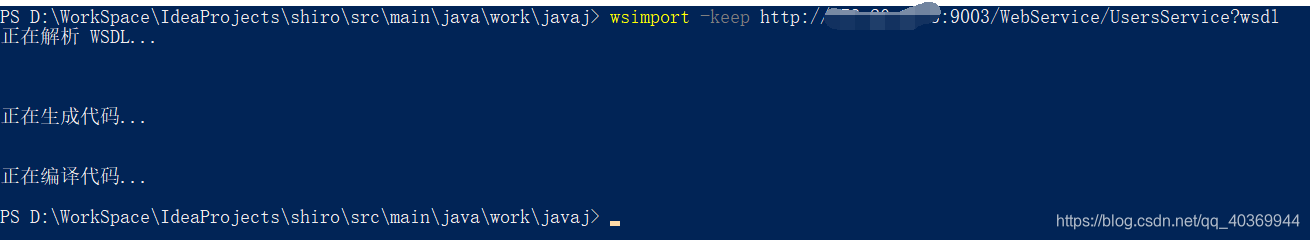 在命令框中输入(shift+右键):wsimport -keep http://192.168.43.82:9003/WebService/UsersService?wsdl