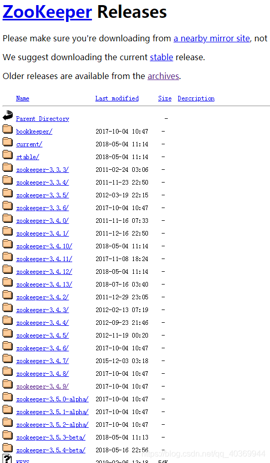 下载地址:http://archive.apache.org/dist/zookeeper/