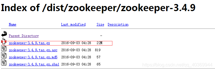 进入下载目录,选择自己要下载的版本,这里以zookeeper-3.4.9为例
