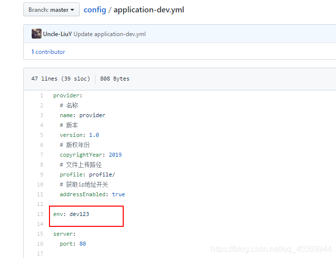 server: port: 10000spring: application: name: CONFIG cloud: config: server: git: uri: https://github.com/Uncle-LiuY/config.git username: ****** password: ****** rabbitmq: host: 127.0.0.0 port: 5672 username: admin password: admin management: endpoints: web: exposure: include: '*' # 暴露接口 eureka: instance: instance-id: config-api client: service-url: defaultZone: http://localhost:9000/eureka/ # 注册中心访问地址